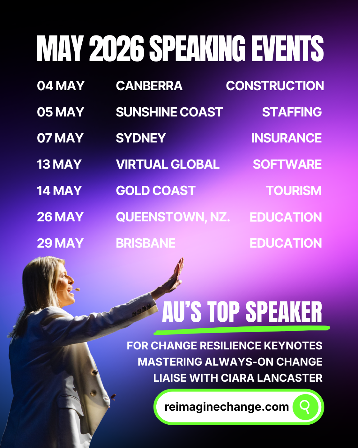 🟣 Ciara delivers reality-based coaching grounded in change leadership, neuroscience and inspirational stage-craft.
